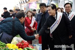 케이부동산뉴스 김교민 기자 | 공주시는 지난 11일 산성시장 일원에서 설 명절을 맞아 전통시장 장보기 행사 및 물가안정 캠페인을 실시했다고 밝혔다. 이번 행사는 소비심리 위축으로 어려움을 겪고 있는 전통시장에 활력을 불어넣고 주요 생필품 등의 가격 인상이 예상되는 설 명절을 앞두고 물가 안정을 도모하기 위해 마련됐다. 이날 캠페인에는 최원철 시장을 비롯해 소비자교육중앙회 공주시지회, 산성시장 상인회 등 70여명이 참여했다. 참여자들은 물가안정 캠페인과 함께 설 연휴 기간을 대비해 전기, 가스, 소방 등 생활 안전문화 캠페인도 병행하며 시민들의 안전의식을 높였다. 캠페인 종료 후에는 직접 전통시장에서 장을 보며 전통시장상품 구매를 독려하고, 상인들의 애로사항을 청취하는 시간을 가졌다. 한편, 시는 오는 20일까지를 전통시장 장보기 주간으로 정하고, 전통시장 이용 활성화와 물가 안정 분위기 확산에 적극 나설 계획이다. 최원철 시장은 “설 명절을 맞아 민생 안정을 최우선 과제로 삼고 있다”며 “시민 모두가 풍요롭고 따뜻한 명절을 보낼 수 있도록 물가 안정과 전통시장 활성화에