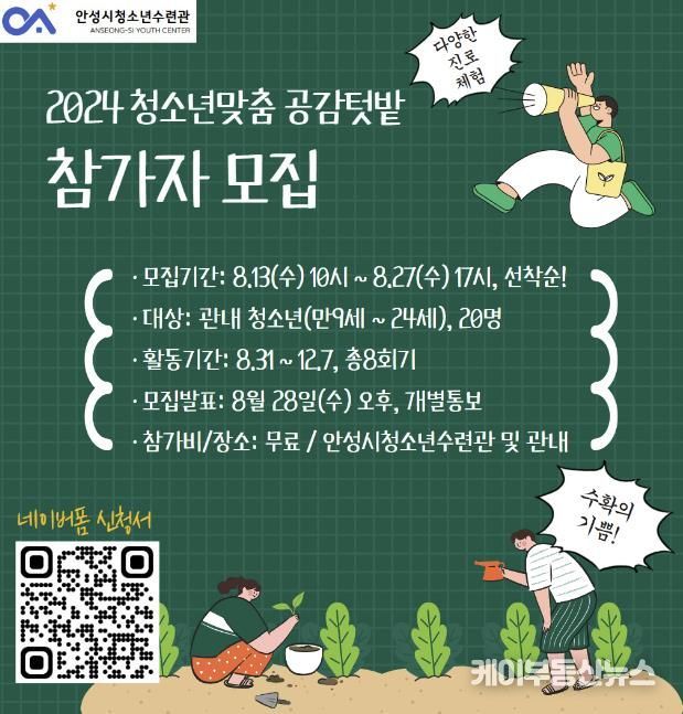 케이부동산뉴스 김교민 기자 | 안성시청소년수련관은 청소년들의 농업관련 다양한 직업 탐색을 위해 ‘청소년맞춤 공감텃밭’을 운영한다.
