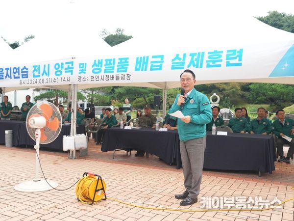 케이부동산뉴스 김교민 기자 | 천안시는 21일 시청 버들광장에서 2024년 을지연습 실제훈련인 ‘전시 양곡·생필품 배급’을 실시했다.