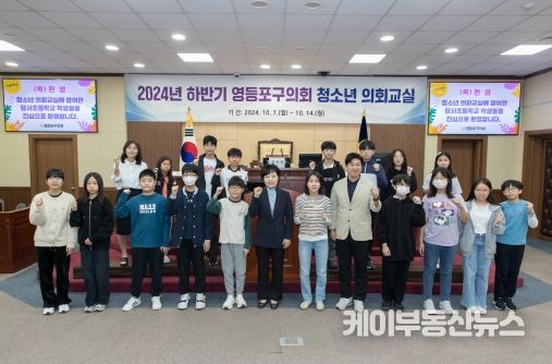 케이부동산뉴스 김교민 기자 | 영등포구의회는 10월 7일 오전 10시 영등포구의회 본회의장에서 정선희 의장과 전승관 의원이 참석한 가운데‘2024년 하반기 청소년 의회교실’을 개최했다.