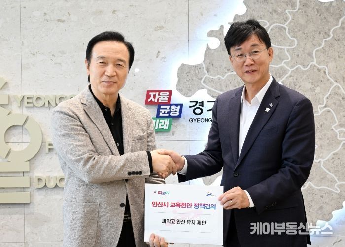 케이부동산뉴스 김교민 기자 | 안산시는 이민근 안산시장이 지난 25일 경기도교육청 대회의실에서 개최된 ‘2024 지역교육협력 컨퍼런스’에서 임태희 경기도교육감과 면담하고 ‘과학고 안산시 유치’ 선정 필요성을 담은 정책건의서를 전달했다고 28일 밝혔다.