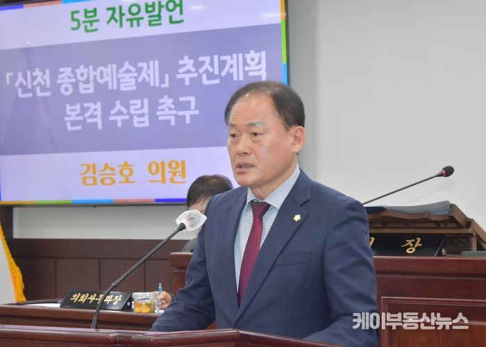 케이부동산뉴스 김교민 기자 | 동두천시의회 김승호 의장(국민의힘, 가선거구)이 잠시 의사봉을 내려놓고 모처럼 5분 자유발언 마이크를 잡았다. 26일 열린 제336회 동두천시의회 임시회 개회식 5분 자유발언에 나선 김 의장은 “더 늦기 전에 어서 ‘신천 종합예술제’를 본격적으로 추진해야 한다”라고 강력히 주장했다.