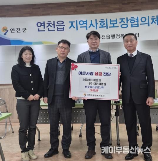 케이부동산뉴스 김교민 기자 | 연천군 소재 ㈜와이즈이앤지와 ㈜더존이엔엠은 지난 12일 연천읍 행정복지센터를 방문, 성금 500만원을 기탁했다.