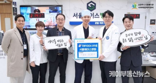 케이부동산뉴스 김교민 기자 | 남양주시는 11일 서울에이스병원이 서부희망케어센터에서 추진 중인 ‘기부1004 프로젝트’에 참여해 100만 원을 기부하고, 병원 임직원들과 함께 지속적인 나눔 참여를 약속했다고 밝혔다.