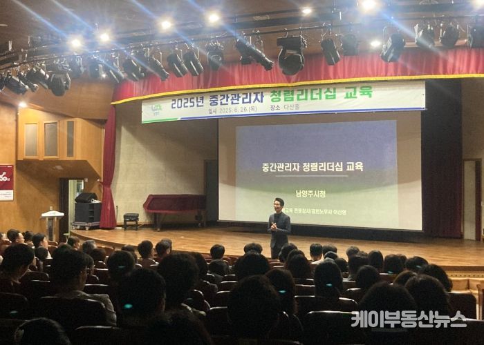 케이부동산뉴스 김교민 기자 | 남양주시는 지난 26일, 시청 다산홀에서 6급 중간관리자 400여 명을 대상으로 ‘2025년 중간관리자(6급) 청렴 리더십 교육’을 실시했다.