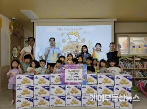 케이부동산뉴스 김교민 기자 | 여흥동에 위치한 세종어린이집은 지난 8일, 원아와 학부모, 교직원이 직접 재배하고 수확한 감자 20박스(총 200kg)를 여흥동행정복지센터에 기탁했다.