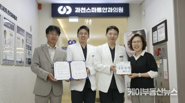 케이부동산뉴스 김교민 기자 | 과천 스마트안과가 ‘나눔가게 39호점’에 자발적으로 참여해 이달부터 매달 10만 원을 지역 이웃을 위해 기부한다.