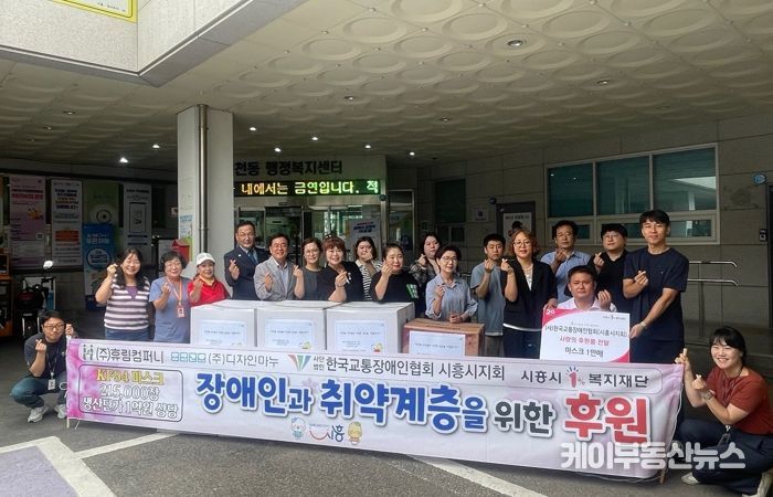케이부동산뉴스 김교민 기자 | 시흥시에 마스크 후원의 따뜻한 물결이 이어지고 있다. 이번 후원은 경기도 안산시에 있는 휴림컴퍼니와 경기도 성남시에 있는 디자인마누가 (사)한국교통장애인협회 시흥시지회를 통해 마련했으며, 지난 8월 8일 신천동과 매화동을 찾아 취약계층을 위한 방역 마스크(KF94) 1만 장을 각각 전달했다.
