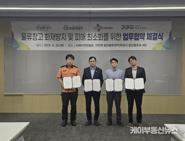 케이부동산뉴스 김교민 기자 | 화성특례시가 지난 26일 화성소방서, 씨제이대한통운, 지마켓과 ‘물류창고 화재안전관리 강화를 위한 업무협약’을 체결했다.