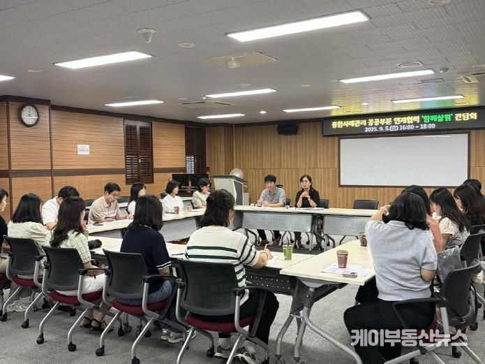 케이부동산뉴스 김교민 기자 | 의정부시는 9월 5일 시청 인재양성교육장에서 공공부문 연계‧협력 ‘함께 살핌’ 간담회를 열고, 공공기관 간 협업을 통한 사업 추진 방향과 우수사례를 공유했다.