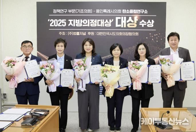 케이부동산뉴스 김교민 기자 | 용인특례시의회 의원연구단체 ‘탄소중립연구소’가 법률저널 주최, 대한민국시도의회의장협의회 후원으로 열린 ‘2025 지방의정대상’에서 정책연구 기초의회 부문 대상을 수상했다.