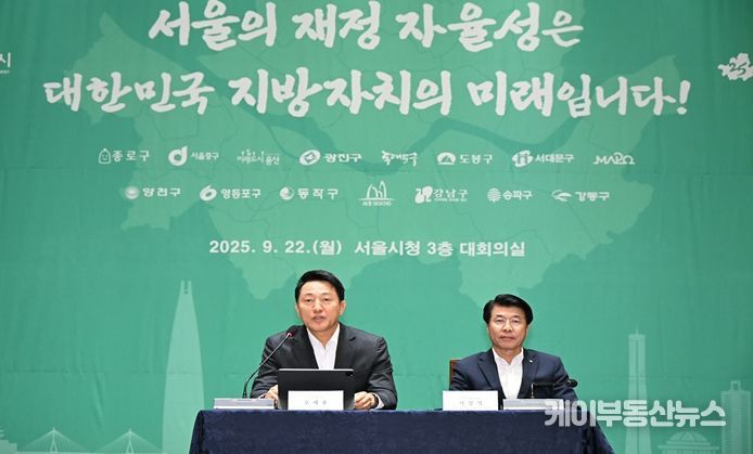 케이부동산뉴스 김교민 기자 | 서울시와 구청장협의회는 22일 오전 8시 30분 서울시청 대회의실에서 소비쿠폰 등 정책 비용에 대한 정부의 일방적인 지자체 전가와 서울시에 대한 차등적 국비 보조 관행 개선을 촉구하는 내용의 ‘서울시‧자치구 지방재정 공동선언’을 발표했다.