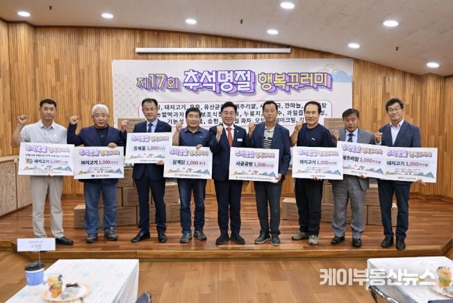 케이부동산뉴스 김교민 기자 | 양평군은 지난 29일, 양평군종합사회복지관에서 양평군축산발전협의회, 양평군기업인협의회 등 지역사회 내 나눔을 실천하는 많은 단체들이 함께하는 ‘제17회 추석 명절 행복 꾸러미’ 전달식을 가졌다고 밝혔다.