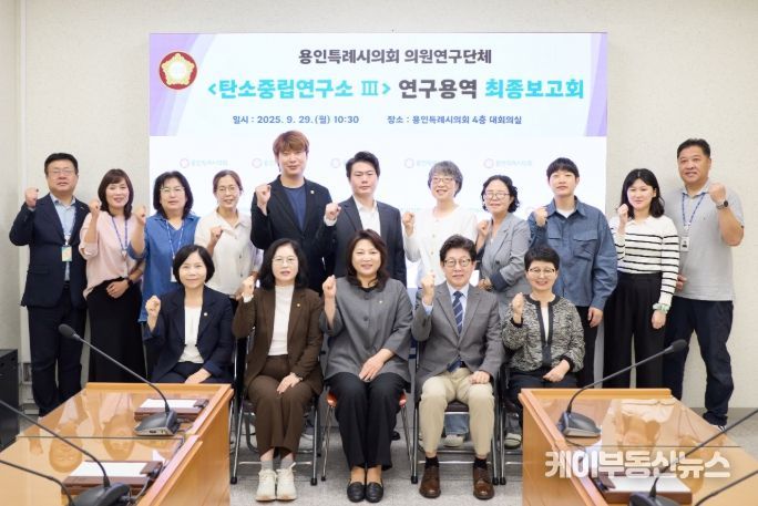 케이부동산뉴스 김교민 기자 | 용인특례시의회 의원연구단체 ‘탄소중립연구소Ⅲ’은 29일 시의회 대회의실에서 ‘용인시 기후 불평등 해소 정책대안’ 연구용역 최종보고회를 개최했다.