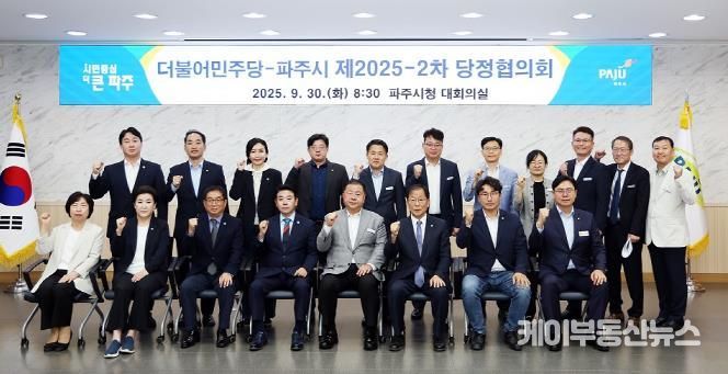 케이부동산뉴스 김교민 기자 | 파주시는 지난 30일 시청 대회의실에서 2026년 정부예산 확보 및 시정 주요 현안 사업 논의를 위해 올해 두 번째 당정협의회를 개최했다.