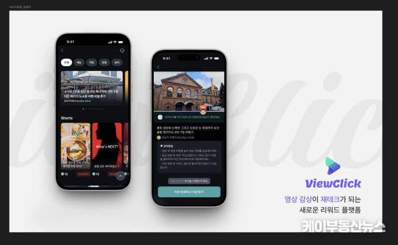 케이부동산뉴스 김교민 기자 | 리워드 기반 모바일 광고 플랫폼 전문기업 (주)자몽랩이 새로운 영상 리워드 서비스 ‘뷰클릭(ViewClick)’을 출시했다고 밝혔다. 뷰클릭은 사용자가 영상 콘텐츠를 시청하면 동시에 리워드를 제공받는 참여형 플랫폼으로, 브랜드와 소비자 간 새로운 소통 방식을 제시한다.