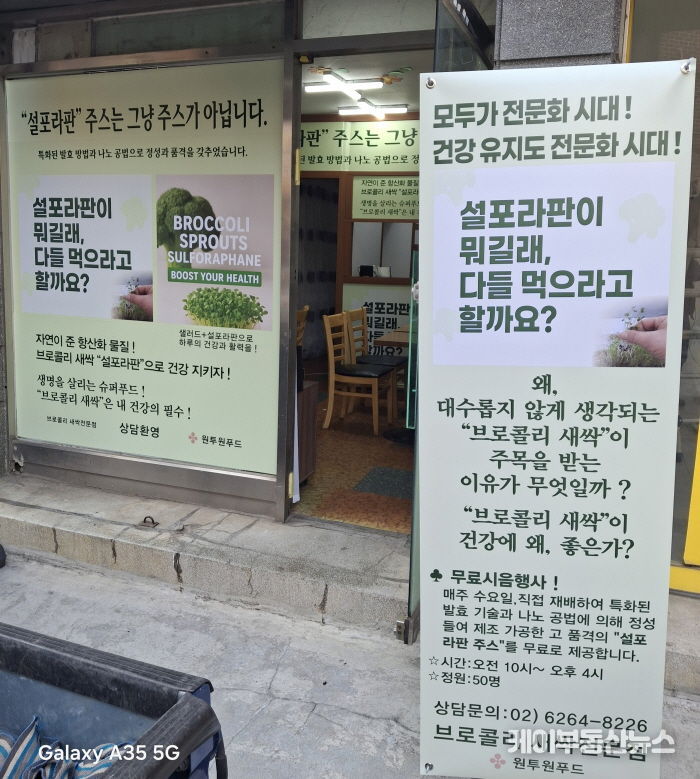 특히, 이번에 개설한 '브로콜리 새싹 전문 1호점'에서는 직접 재배하여 특화된 방법으로 발효하여 300 나노화한 브로콜리 새싹 주스를 오픈 기념으로 지역 주민들을 위하여 이달 한 달 동안 매주 수요일 오전 10시부터 오후 4시까지 50명에 한하여 무료로 제공하는 시음 행사도 개최한다.