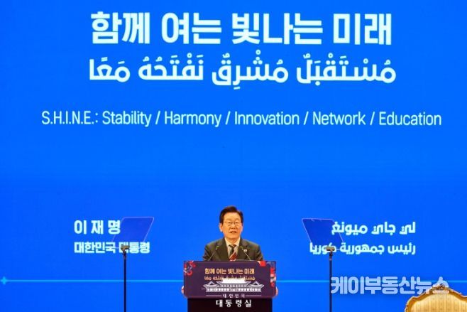케이부동산뉴스 김교민 기자 | 이재명 대통령이 20일(현지시간) 이집트 카이로 대학을 방문해 '샤인(SHINE) 이니셔티브'로 명명된 중동 구상을 발표했다.