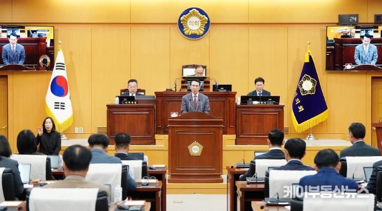 케이부동산뉴스 김교민 기자 | 이완섭 서산시장이 25일 제30회 서산시의회 제2차 정례회에서 “현재의 어려움 속에서도 만화개진(萬和開進)의 자세로 시민과 함께 미래를 열어가겠다”라고 말했다.