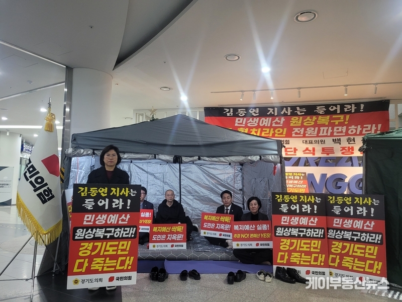 앞서 경기도의회 국민의힘은 지난 25일 기자회견을 통해 경기도의 2026년도 본예산안 편성과 관련해 ▲복지예산 대폭 삭감 ▲필수 민생사업 예산 축소 ▲이재명표 사업 집중 증액 등 예산 불균형을 지적하며 김동연 지사의 정무·협치라인 파면을 요구한 바 있다. 백현종 대표의원은 이 같은 문제의 책임을 묻겠다며 무기한 단식 농성에 들어간 상태다.