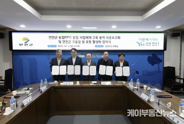 케이부동산뉴스 김교민 기자 | 연천군은 지난 1일 '연천군 농협RPC 통합 사업체계 구축 용역 최종보고회'와 '연천군 고품질쌀 유통활성화 협약식'을 개최하고, 연천쌀 산업의 경쟁력 강화와 지속 가능한 발전을 위한 통합 RPC 추진 방향을 논의했다고 밝혔다.