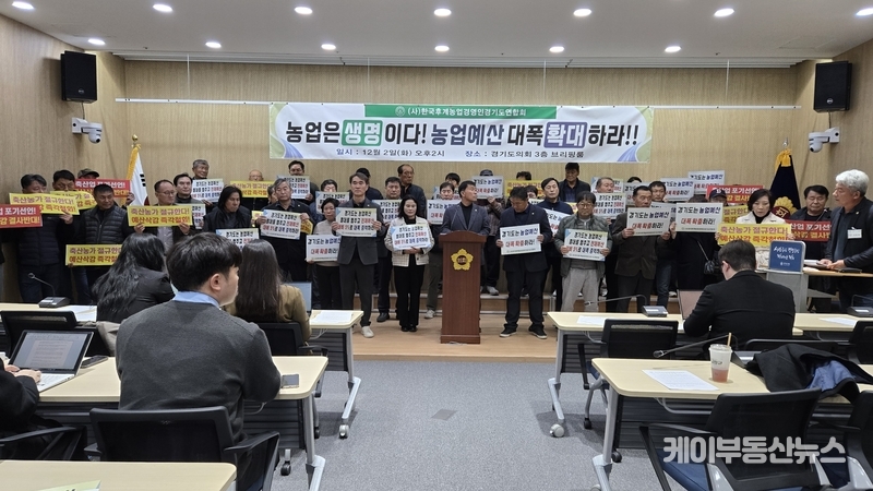 국민의힘 의원들의 규탄 기자회견과 지사실 항의 방문이 이어지는 가운데, 같은 시각 사단법인 한국후계농업경영인경기도연합회(회장 정정호)도 경기도의회 3층 브리핑룸에서 별도의 기자회견을 열고 농업예산 대폭 확충을 촉구하며 김동연 도정을 규탄했다.