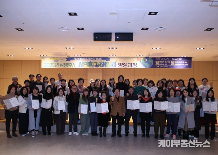 케이부동산뉴스 김교민 기자 | 남양주시는 22일 금곡양정행정복지센터 6층 다목적공연장에서 기후위기 대응과 지역사회 환경교육의 핵심 역할을 수행할 ‘2025년 시민환경해설사 양성과정’ 수료식을 개최했다.
