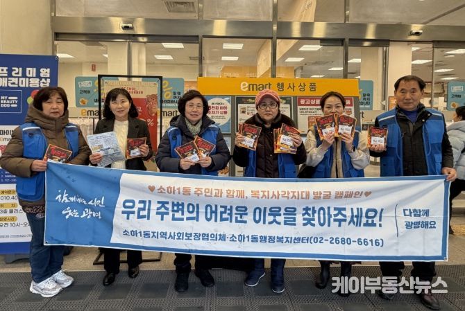 케이부동산뉴스 김교민 기자 | 광명시 소하1동 지역사회보장협의체는 지난 23일 겨울철을 맞아 복지 사각지대에 놓인 위기가구를 발굴하고 지역 주민의 관심을 높이기 위해 소하동 상업지구에서 ‘복지 사각지대 발굴 캠페인’을 실시했다.