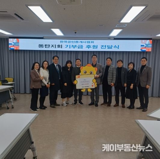 케이부동산뉴스 김교민 기자 | 화성특례시는 한국공인중개사협회 화성동탄지회(초록·중앙·리베라·호수·청계회 포함)에서 24일 화성시 동탄출장소를 방문해 어려운 이웃을 돕기 위한 기부금 619만 원을 기탁했다고 밝혔다.