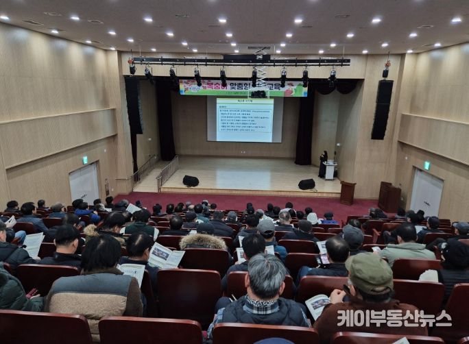 케이부동산뉴스 김교민 기자 | 이천시농업기술센터는 지난 27일 남부 반다비문화체육센터(장호원읍 소재)에서 관내 복숭아 재배 농업인 141명이 참석한 가운데 복숭아 재배 전문성 향상과 경쟁력 강화를 위한 맞춤형 전문교육을 추진했다.