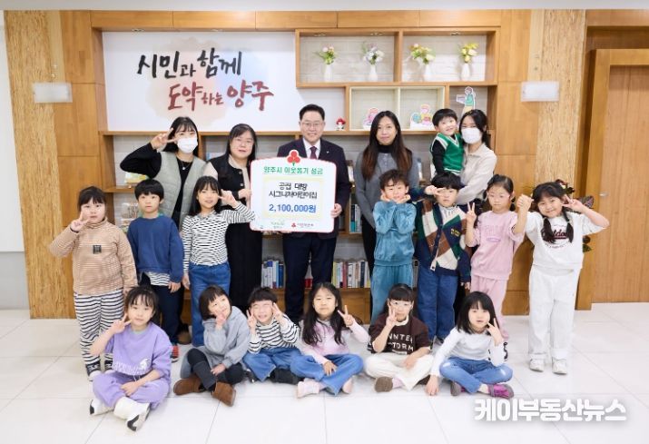 케이부동산뉴스 김교민 기자 | 양주시는 29일 공립 대방시그니처어린이집으로부터 이웃돕기 성금 210만 원을 기탁받았다고 밝혔다.