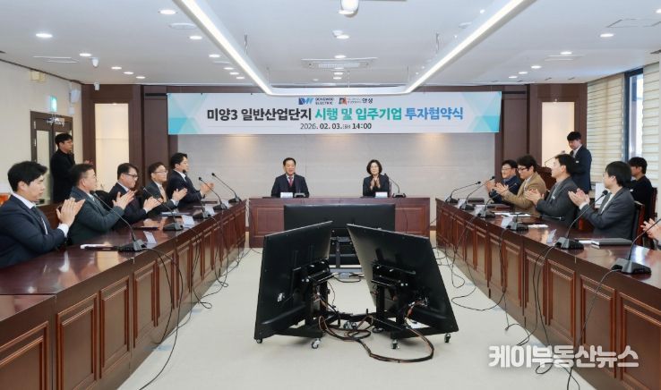 케이부동산뉴스 김교민 기자 | 안성시는 2026년 2월 3일 시청 본관 2층 상황실에서 동우일렉트릭 주식회사와 ‘미양3 일반산업단지 시행 및 입주기업 투자유치 양해각서(MOU)’를 체결했다. 이번 협약을 통해 동우일렉트릭(주)는 미양3 일반산업단지에 총 1,303억 원을 투자하고 500명의 신규 고용을 창출하기로 했다.