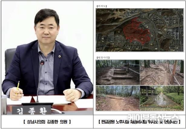 케이부동산뉴스 김교민 기자 | 성남시의회 국민의힘 김종환 의원(판교·백현·운중·대장동, 예산결산특별위원장)은 분당구 판교동 판교공원 일원 노후 산책로와 바닥포장 등을 정비하는 재정비공사가 본격 추진됨을 밝혔다.