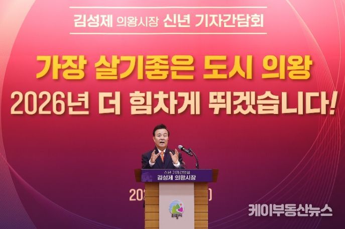 케이부동산뉴스 김교민 기자 | 김성제 의왕시장이 5일 시청 대회의실에서 2026년 신년 기자간담회를 열고 민선8기 의왕시 주요성과와 2026년 시정 운영방향에 대해 설명하는 시간을 가졌다.