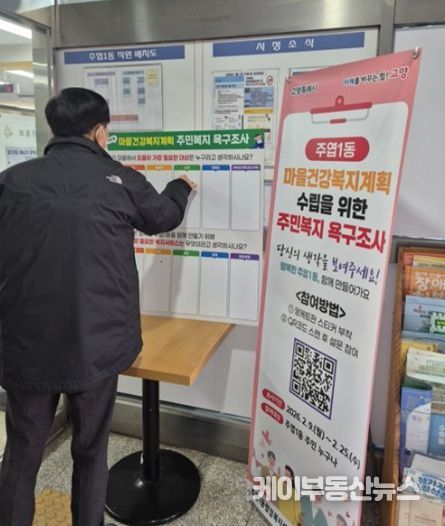 케이부동산뉴스 김교민 기자 | 고양특례시 일산서구 주엽1동이 이달 9일부터 25일까지 주민들의 건강과 복지 욕구를 파악하기 위한 ‘주민복지 욕구 조사’를 실시한다.