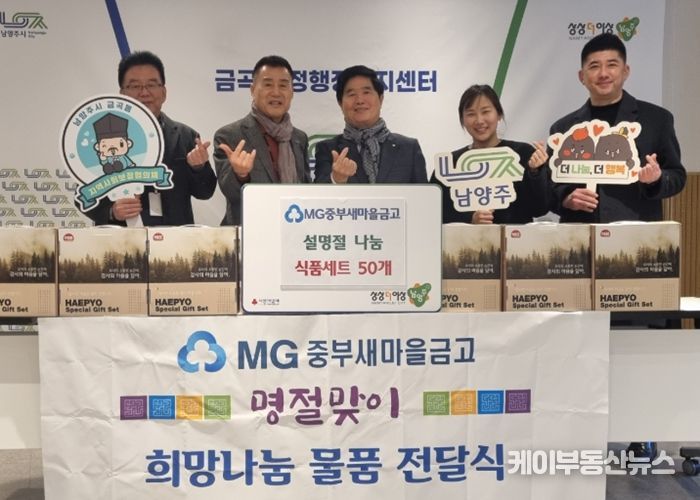 케이부동산뉴스 김교민 기자 | 남양주시는 지난 9일 MG중부새마을금고가 지역 내 취약계층이 따뜻한 설 명절을 보낼 수 있도록 식품 선물 세트 50개를 금곡동 지역사회보장협의체에 기탁했다고 10일 밝혔다.