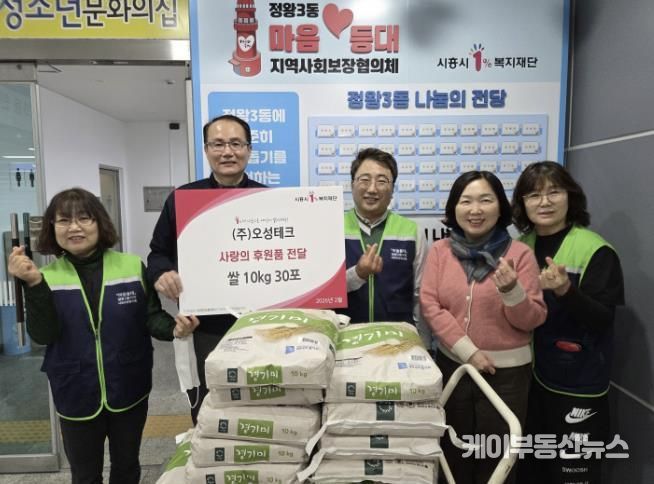 케이부동산뉴스 김교민 기자 | ㈜오성테크는 설 명절을 맞아 지난 2월 10일 정왕3동 지역사회보장협의체에 취약계층을 위한 쌀 10kg 30포를 기탁했다.
