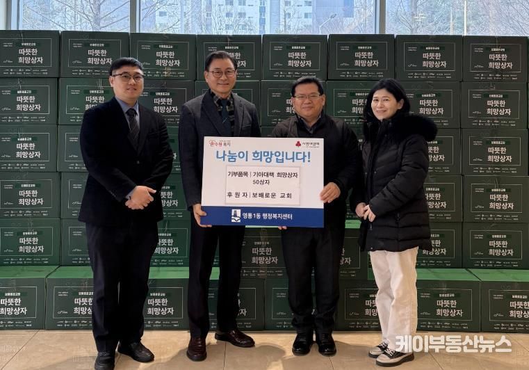 케이부동산뉴스 김교민 기자 | 수원특례시 영통구 영통1동은 지난 10일 보배로운 교회가 설 명절을 맞아 관내 어려운 이웃에게 전달해달라며 ‘기아대책 희망상자(생활필수품 키트)’ 50박스를 영통1동 행정복지센터에 기탁했다고 밝혔다.