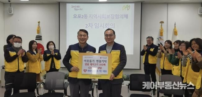 케이부동산뉴스 김교민 기자 | 광주시 오포2동 행정복지센터에 설 명절을 앞두고 취약계층을 돕기 위한 성금과 물품 기탁이 이어지며 지역사회 나눔이 확산되고 있다.