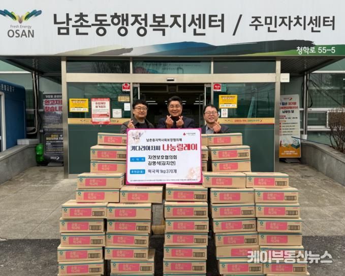 케이부동산뉴스 김교민 기자 | 오산시 남촌동은 지난 10일 설 명절을 맞아 남촌동 자연보호협의회 김명석 회장이 관내 저소득층 및 취약계층을 위해 떡국 떡 1kg 370개를 기탁했다고 밝혔다.