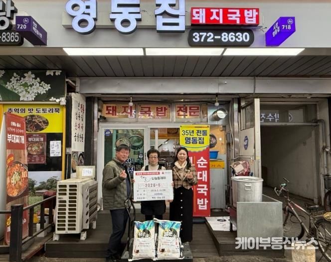 임영자 시장영동집 대표는 “작은 정성이지만 지역 내 어려운 분들이 든든한 한 끼를 드시는 데 보탬이 됐으면 좋겠다”며 “앞으로도 이웃에 대한 관심과 나눔을 지속해 나가겠다”고 전했다.
