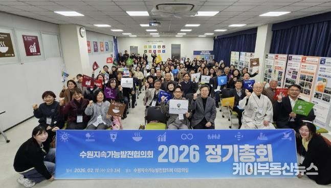 케이부동산뉴스 김교민 기자 | 수원시지속가능발전협의회는 11일 더함파크 대강의실에서 ‘2026년 정기총회’를 열고, 2025년 사업 추진 결과를 공유했다. 또 2026년 사업계획과 예산안을 심의·의결했다.