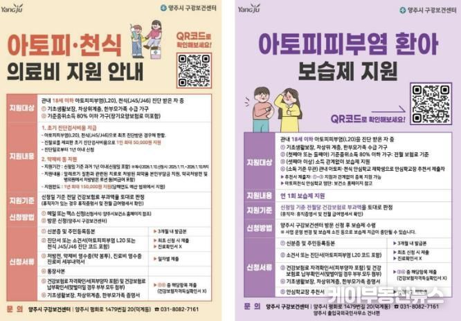 양주시 구강보건센터 관계자는 “알레르기 질환은 소아기 때 적절히 관리하지 않으면 성인기 만성질환으로 이행될 가능성이 크다”며, “건조한 겨울철과 2~3월 환절기는 증상이 악화될 수 있는 만큼 보습제 지원이나 의료비 혜택을 적극 활용해달라”고 당부했다.