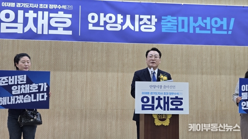 케이부동산뉴스 김교민 기자 | 임채호 前 경기도의회 사무처장이 12일 오후 경기도의회 3층 브리핑룸에서 기자회견을 열고 안양시장 출마를 공식 선언했다.