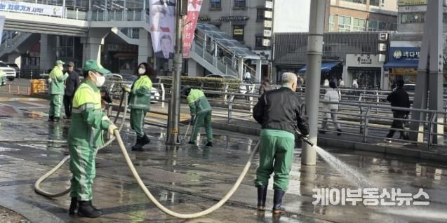 케이부동산뉴스 김교민 기자 | 수원시 팔달구는 지난 12일, 최근 지속된 영하권 날씨로 물청소가 중단됐던 수원역 로데오거리 일대에 대해 환경정비 활동을 실시했다고 밝혔다.