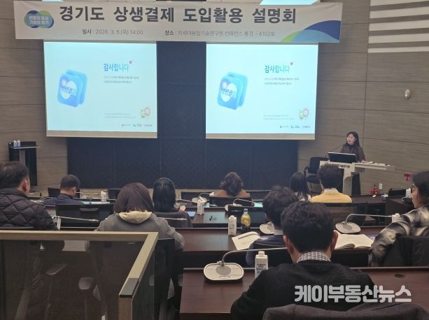 케이부동산뉴스 김교민 기자 | 경기도는 5일 수원 차세대융합기술연구원에서 도와 31개 시군 상생결제 담당 공무원 70여 명을 대상으로 ’26년 상생결제 도입·활용 설명회를 개최했다.