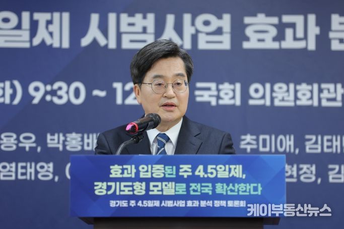 케이부동산뉴스 김교민 기자 | 김동연 경기도지사가 경기도형 주4.5일제 도입 효과가 입증됐다며 전국적 확산과 대기업·중소기업 상생협력 모델 도입 의지를 강하게 밝혔다.