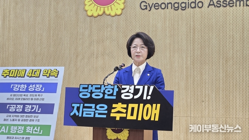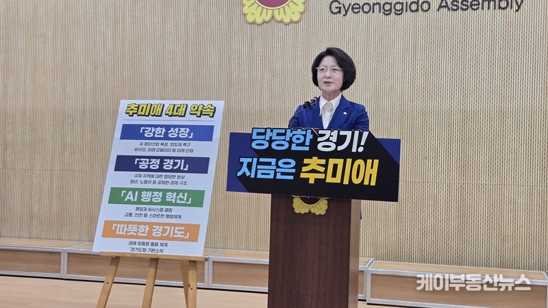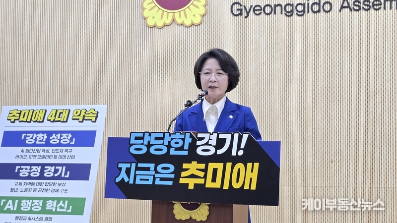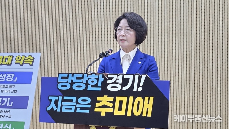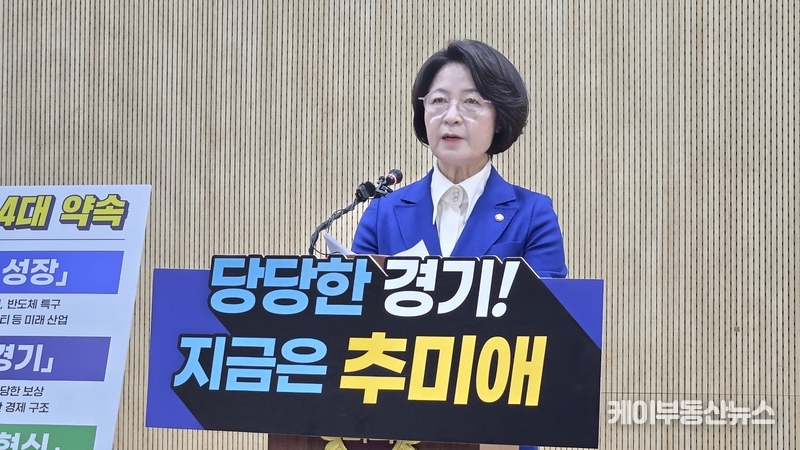 케이부동산뉴스 김교민 기자 | 추미애 국회 법제사법위원회 위원장이 12일 경기도지사 선거 출마를 공식 선언하며 ‘당당한 경기’를 내세운 경기도 대전환 비전을 제시했다.