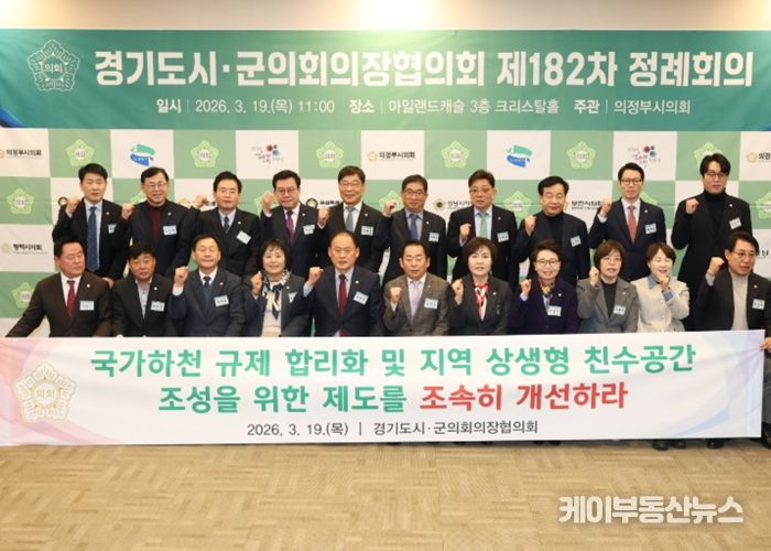 케이부동산뉴스 김교민 기자 | 경기도시군의회의장협의회 회장인 동두천시의회 김승호 의장이 제안한 '국가하천 규제 합리화 및 지역 상생형 친수공간 조성을 위한 제도 개선 촉구 건의안'이 19일 의정부 아일랜드캐슬에서 열린 제182차 정례회의에서 만장일치로 채택됐다.