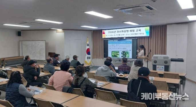 이번 교육에서는 권효린 주무관(농촌지도사)이 화상병의 주요 증상과 예방법, 농업인이 지켜야 할 관리 수칙, 발생 시 공적 방제 절차 등에 대해 중점적으로 안내했다.